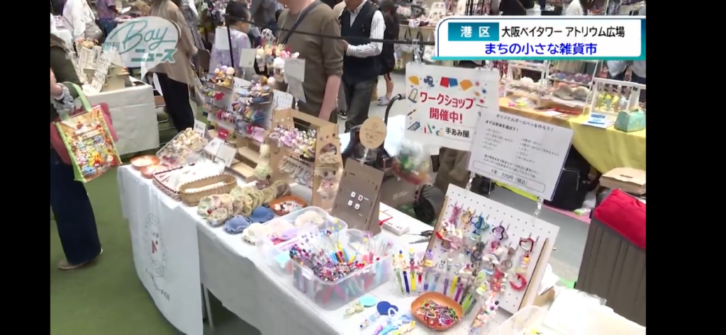 当日は、大阪ベイタワー アトリウム広場に多くのお客さまにお越しいただき、会場には出店者の皆さまによる個性豊かなハンドメイド作品が並びました。